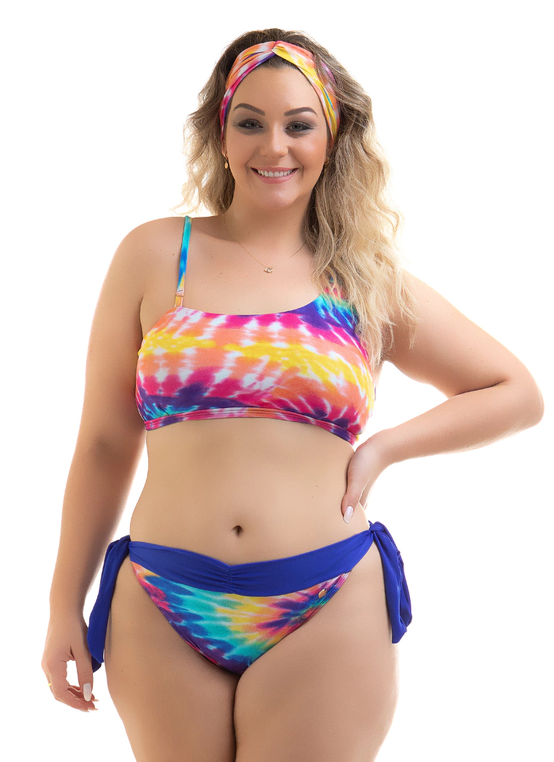 Se você busca um biquíni plus size que una estilo e versatilidade, o Biquíni Mula Manca sem bojo é a escolha certa! Com alça removível de um lado e alça ajustável do outro, oferece duas formas de uso para personalizar o seu look. A calcinha de amarração nas laterais proporciona um ajuste perfeito e valoriza as curvas. A estampa tie dye está em alta e traz um toque de modernidade para o seu visual. Ideal para curtir a praia ou a piscina com conforto e muito estilo.