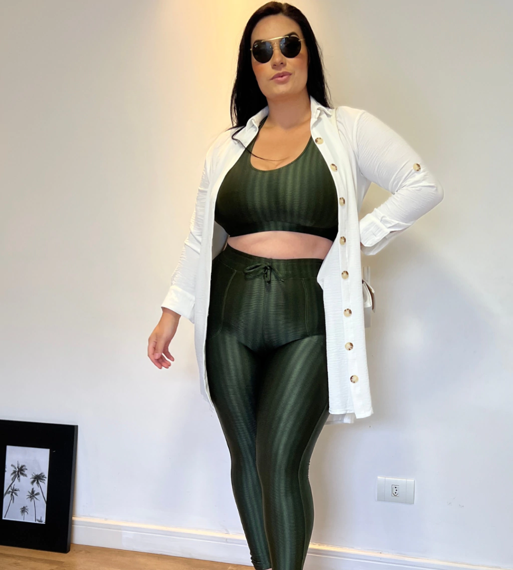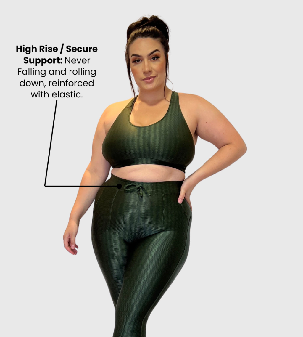 Aprimore seu treino com nossas leggings Plus Size. Confeccionadas em tecido cintilante, possuem tecnologia anticelulite e cós alto para sustentação. O detalhe de cadarço acrescenta estilo e os bolsos laterais proporcionam praticidade. A proteção UV+ garante que sua pele esteja segura durante atividades ao ar livre.